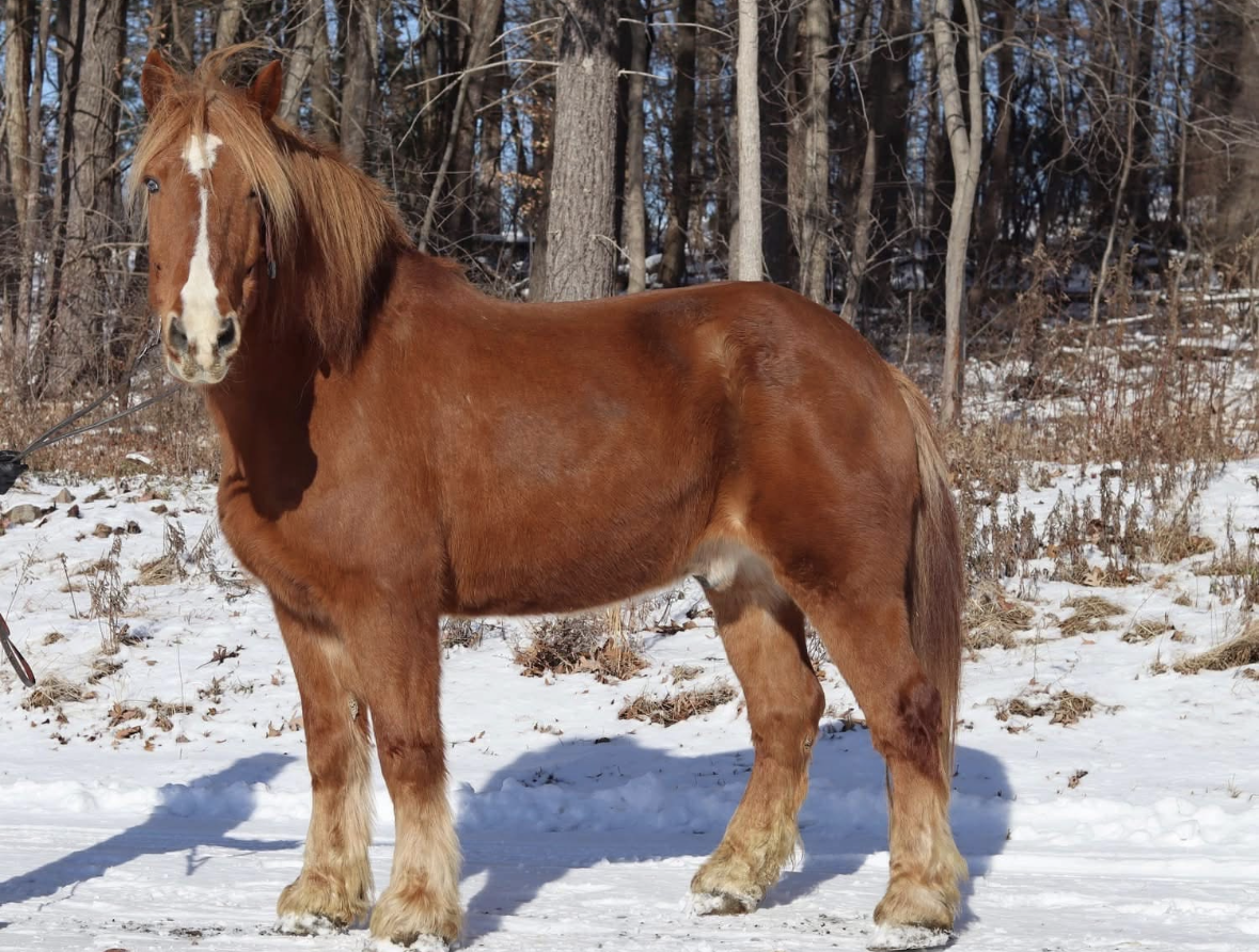Breed: Chestnut 16h Suffolk Punch gelding.