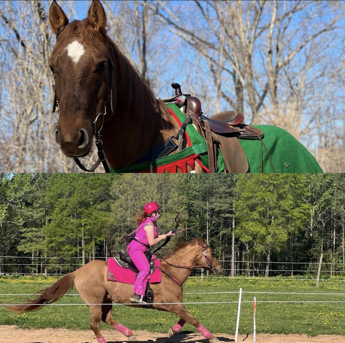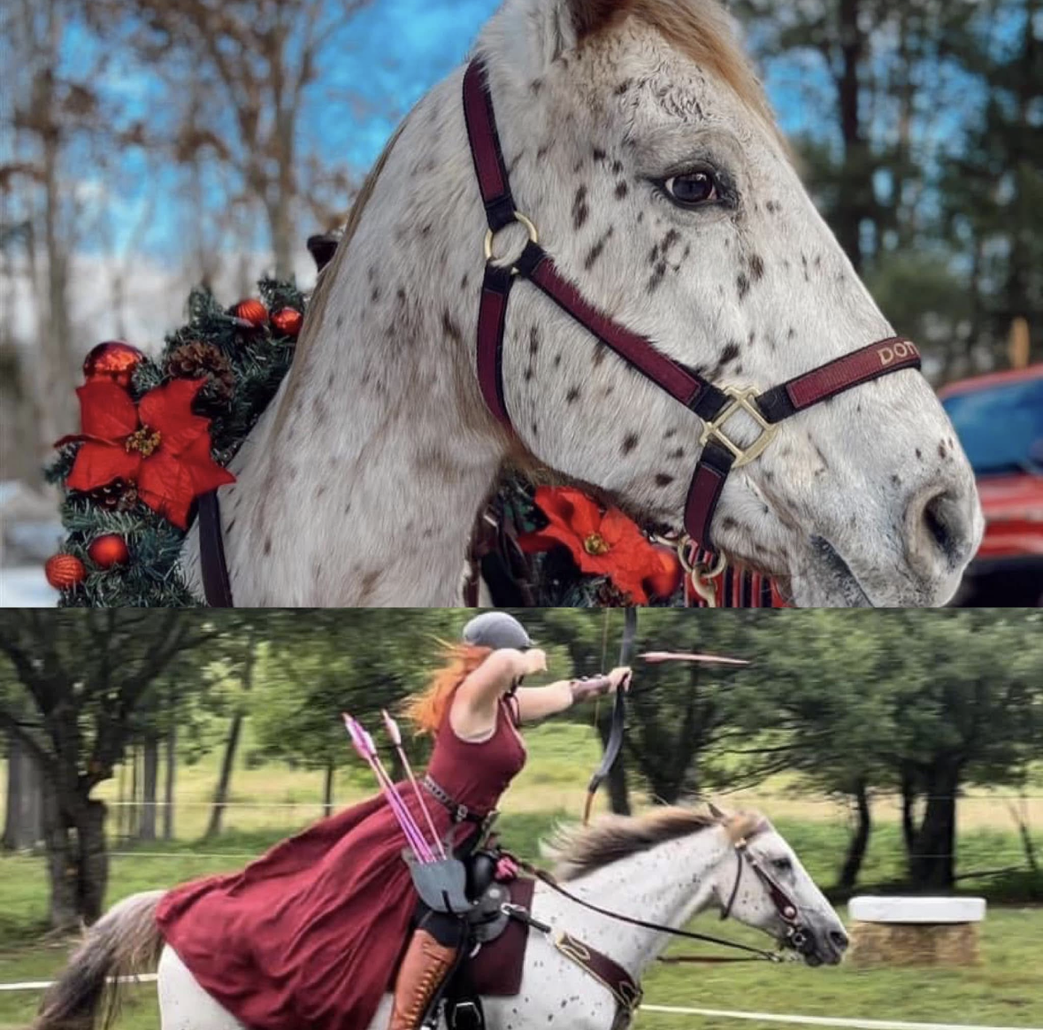 June is an all around versatile horse, she has experience as a range horse, jumping, gymkhana, hunting - she can do it all! Dotti has been doing horse archery for 3 year now, with a real need for speed! She is forgiving on beginners and has buttons for advance riders. Dotti can give a slow canter for the towers and speed up for the raid.
